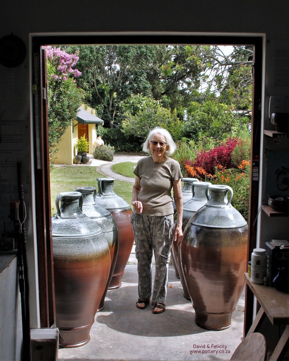 - Their work gained visibility at auction: Strauss & Co, Cape Town, sold a Large Blue and White Vase by David and Felicity.